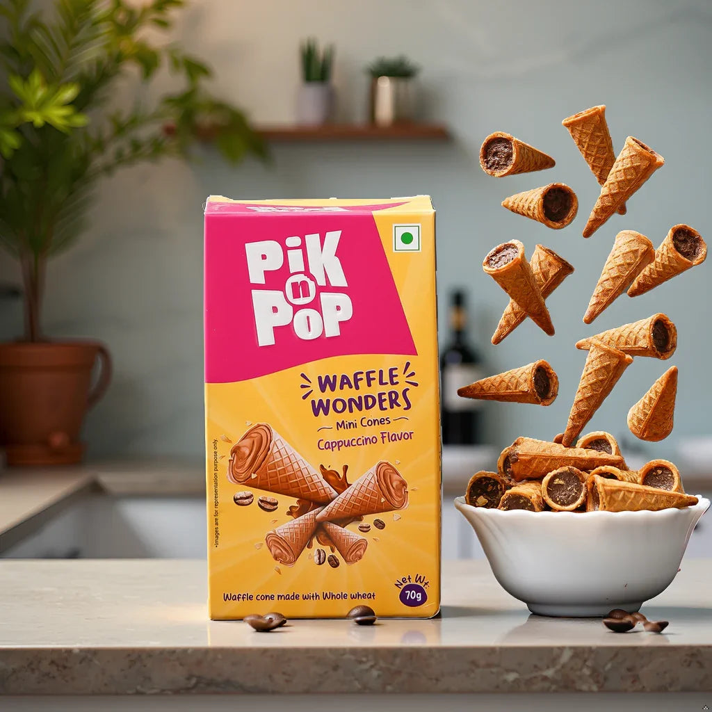 Get your favorite café drink in a crunchy, convenient bite with Pik n Pop Cappuccino Mini Waffle Cones. We blend real coffee extract with a creamy filling to create a snack that delivers a perfect balance of sweetness and a nutty, roasted kick. It’s a sophisticated treat that doubles as a delicious mini dessert or an afternoon pick-me-up. Enjoy the heavenly combo of coffee and cream, wrapped in a satisfyingly crisp cone.