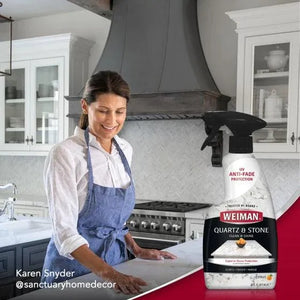 Daily care for sealed stone counters — a pH-neutral formula that cleans, polishes and protects quartz without streaking. Safe for many sealed stone and non-porous surfaces where ordinary cleaners can leave residue.