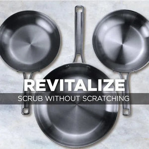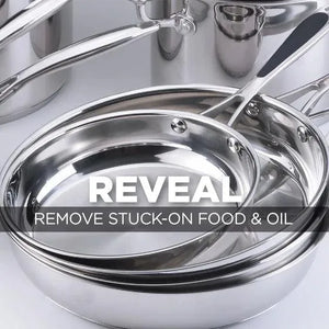 Designed to clean cookware and sinks thoroughly while preserving surface finish. A gentle semi-abrasive formula tackles stuck-on food and mineral deposits without scratching.