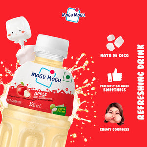 Discover the uniquely satisfying Mogu Mogu Apple Juice, a crisp and refreshing global favorite from Thailand. This fun and flavorful drink contains 50% real fruit, blending 25% concentrated apple juice with 25% chewy coconut chunks. It delivers the crisp, refreshing taste of apples while providing a boost of energy, vital nutrients, and fiber. It's the perfect way to quench your thirst and satisfy your hunger. Ready for a refreshing break with Mogu Mogu Apple? 🍏