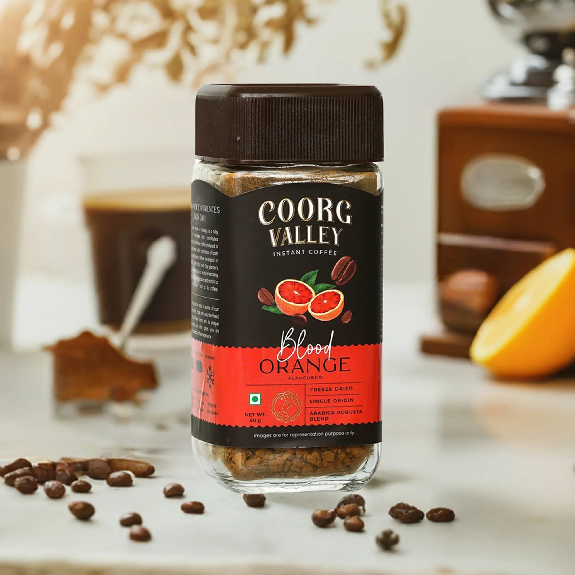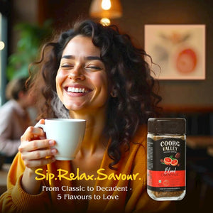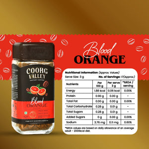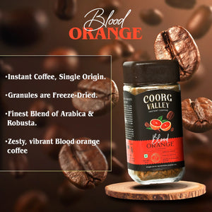Experience a bold twist on your daily brew with Coorg Valley Blood Orange Instant Coffee. Made from a premium single-origin blend of Arabica and Robusta beans, this freeze-dried instant coffee is infused with the refreshing citrus essence of blood oranges—offering a truly exotic and aromatic coffee experience.