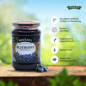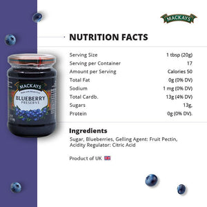 Plump whole blueberries stewed to juicy sweetness — this preserve tastes like late-summer fruit. Use it as a muffin mix-in, spoon onto pancakes, or melt slightly and drizzle over lemon panna cotta for contrast.