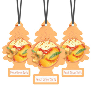 Freshness with a Sparkling Twist. The Little Trees "Peach Ginger Spritz" 3-Pack combines a vibrant fragrance with high-performance air care. Imported directly from the USA, these iconic trees are produced with meticulous craftsmanship to ensure the reliable, high-quality experience that Little Trees is known for.