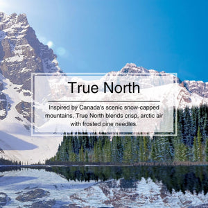 Inspired by frosty peaks and pine trails, True North blends cool arctic air with frosted pine and cedarwood for a crisp, outdoorsy aroma that refreshes and invigorates.