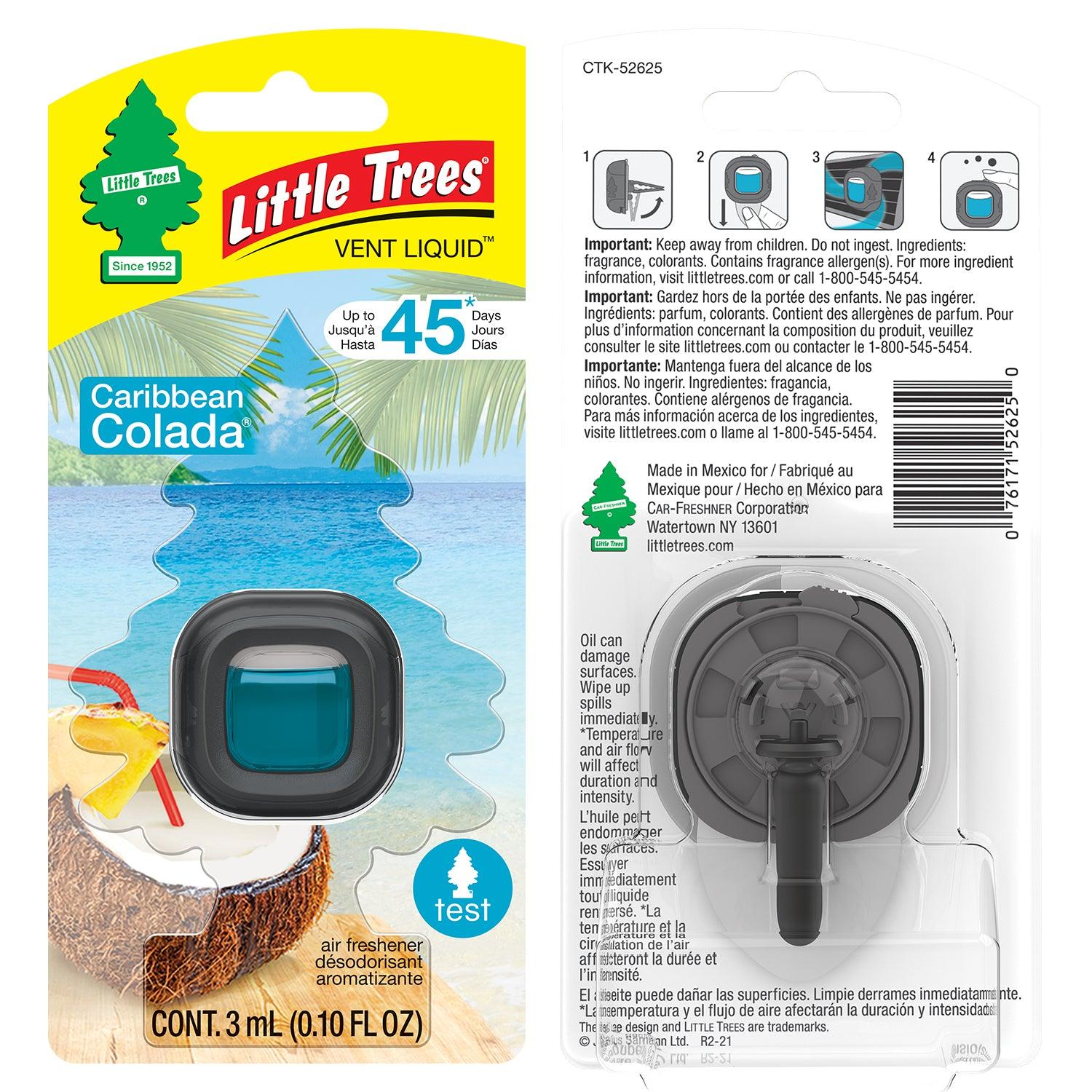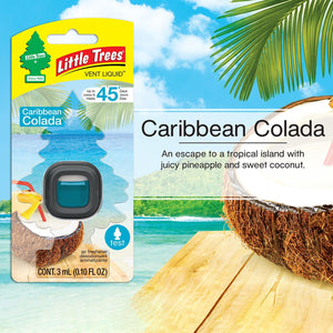 Turn your vents into a tropical escape. Caribbean Colada Vent Liquid blends juicy pineapple with creamy coconut in a vent clip offering adjustable intensity and up to 45 days of island-style aroma.