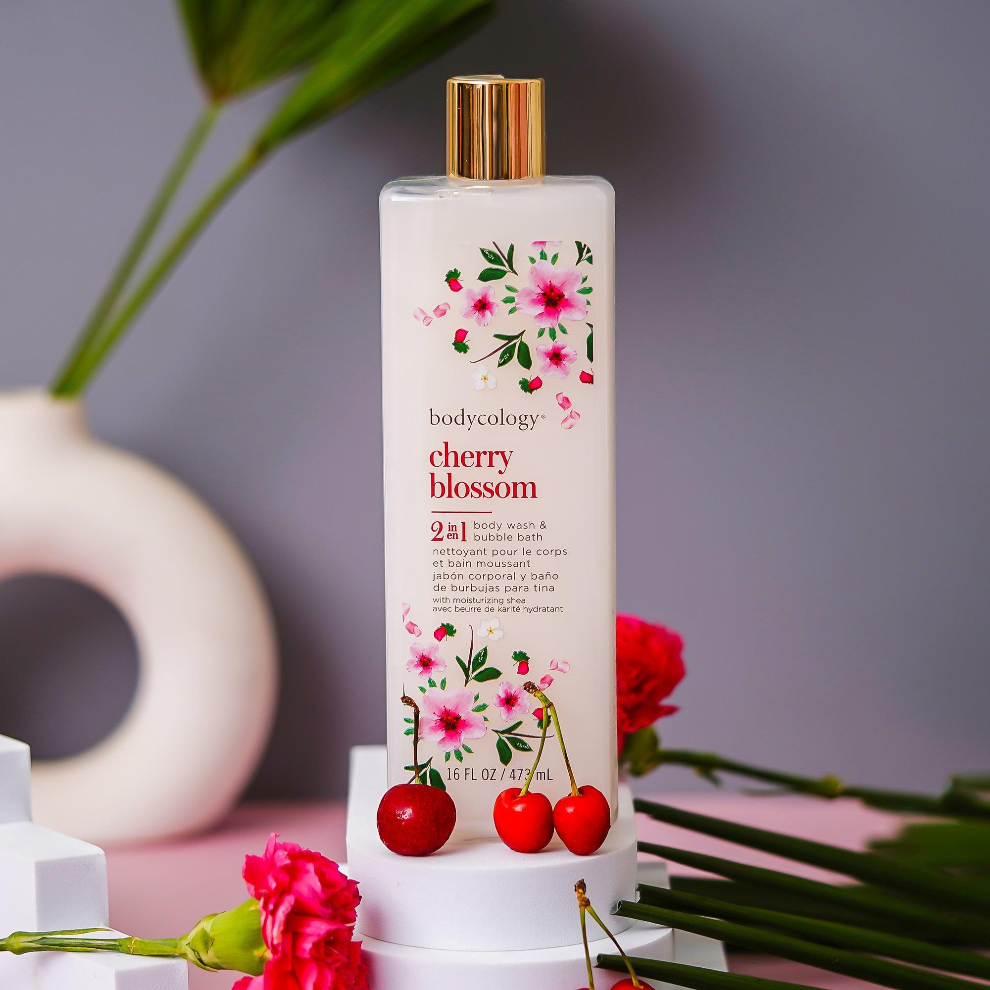 Cherry Blossom 2In1 Body Wash And Bubble Bath is a body product that delivers a scent: enjoy the delightful scent of cherry blossom, featuring notes of cedarwood, cherry blossoms, and pear, which adds a warm and floral aroma to your bathing experience. It's imported from the USA, cruelty-free, paraben-free, phthalate information included, moisturizing butter complex with Shea butter. Use as needed for a boost of fragrance and freshness.