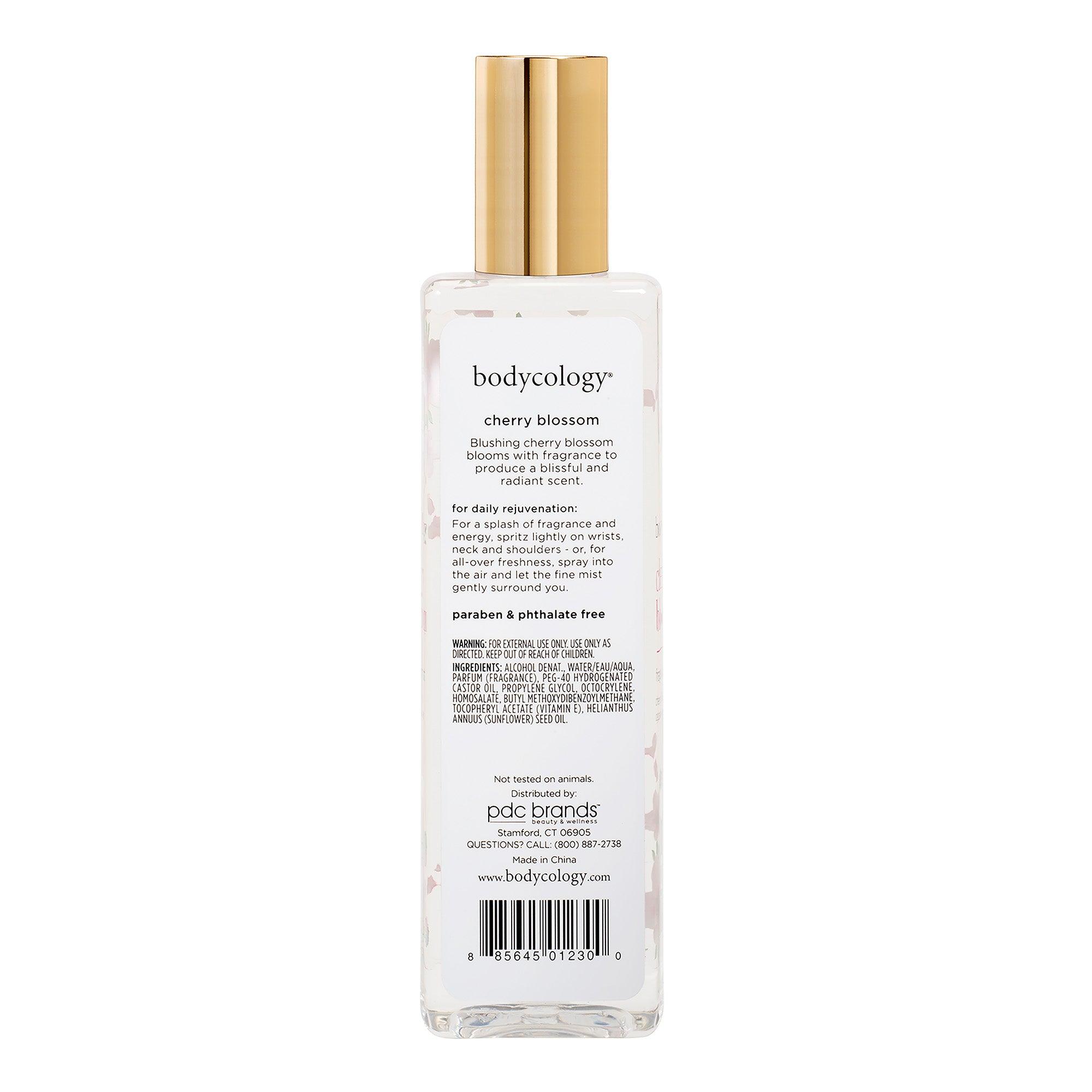 Cherry Blossom Fragrance Mist is a fragrance mist that delivers a scent: enjoy the warm and floral scent of cherry blossom, featuring notes of cedarwood, cherry blossoms, and pear. It's imported from the USA, cruelty-free, paraben-free, phthalate information included. Lightly spritz on wrists, neck and shoulders for a refreshing scent.