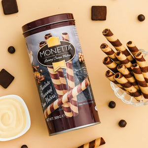 Enjoy these wafer sticks with a warm cup of coffee, a cold glass of milk, or as a decadent topping for ice cream. Their rich flavor and satisfying crunch make them a superb snack for any time of day. Crafted with premium ingredients, Monetta Chocolate Wafer Sticks are a simple yet sophisticated treat, perfect for gifting or personal enjoyment.