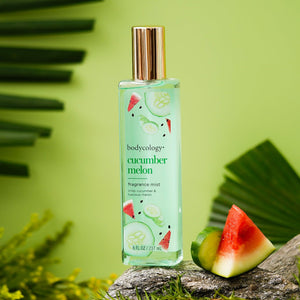 Cucumber Melon Fragrance Mist is a fragrance mist that delivers a scent: enjoy the refreshing blend of clean and fresh notes in this fragrance mist. It's imported from the USA, cruelty-free, paraben-free. Lightly spritz on wrists, neck and shoulders for a refreshing scent.
