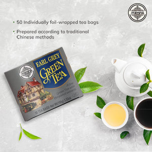 - 50 individually foil-wrapped green tea bags with bergamot