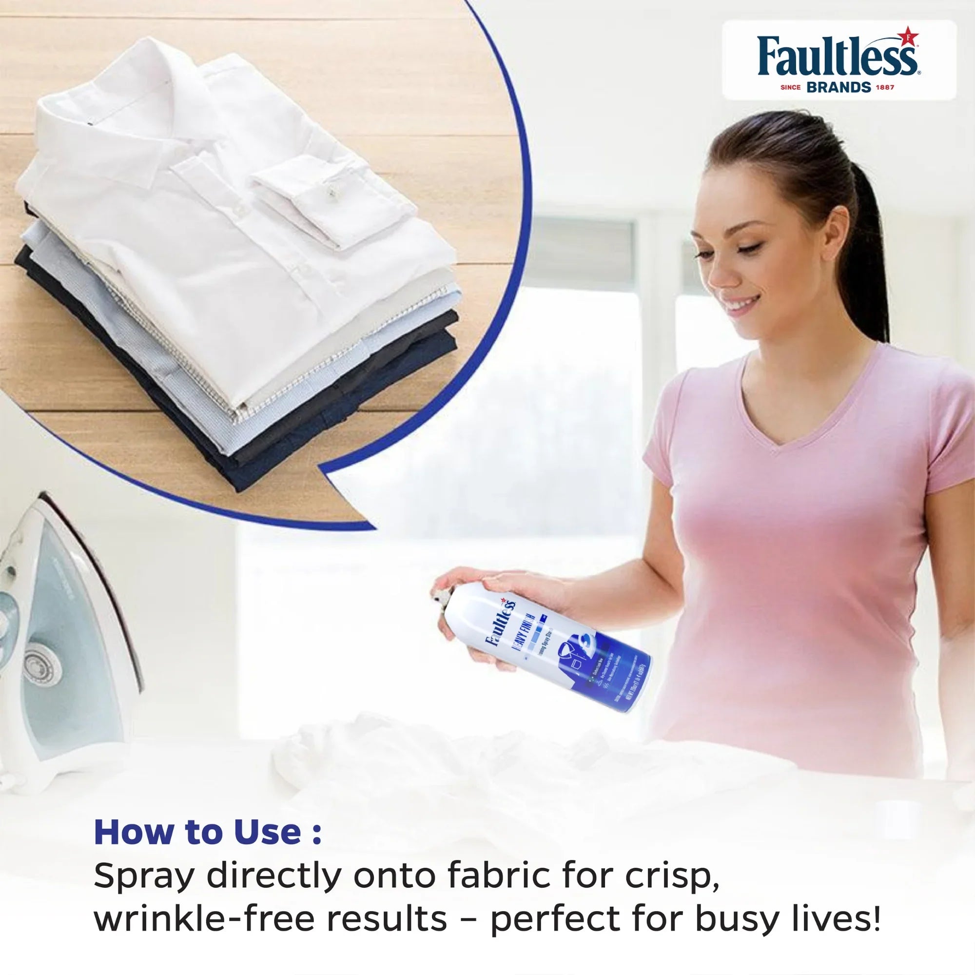 Trusted by families since 1887, Faultless is a leading name in fabric care ironing spray with over 130 years of expertise. The Faultless Heavy Finish Fabric Stiffener Spray is your go-to solution for crisp, freshly pressed clothes—without the hassle of traditional starching methods.