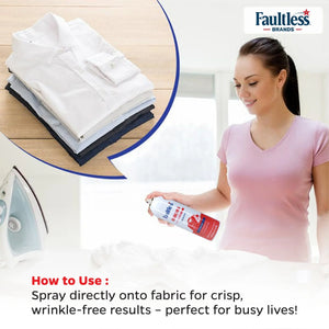 With 130 years of fabric expertise, Faultless is the preferred choice to make clothes look fresh and fabulous with this starch spray. Gone are the days to first wash your shirt or favourite saree in starch powder, sun dry them and then heavy iron them. Just spray Faultless Starch Spray on your clothes before ironing and get a polished and crisp looking fabric in an instant!