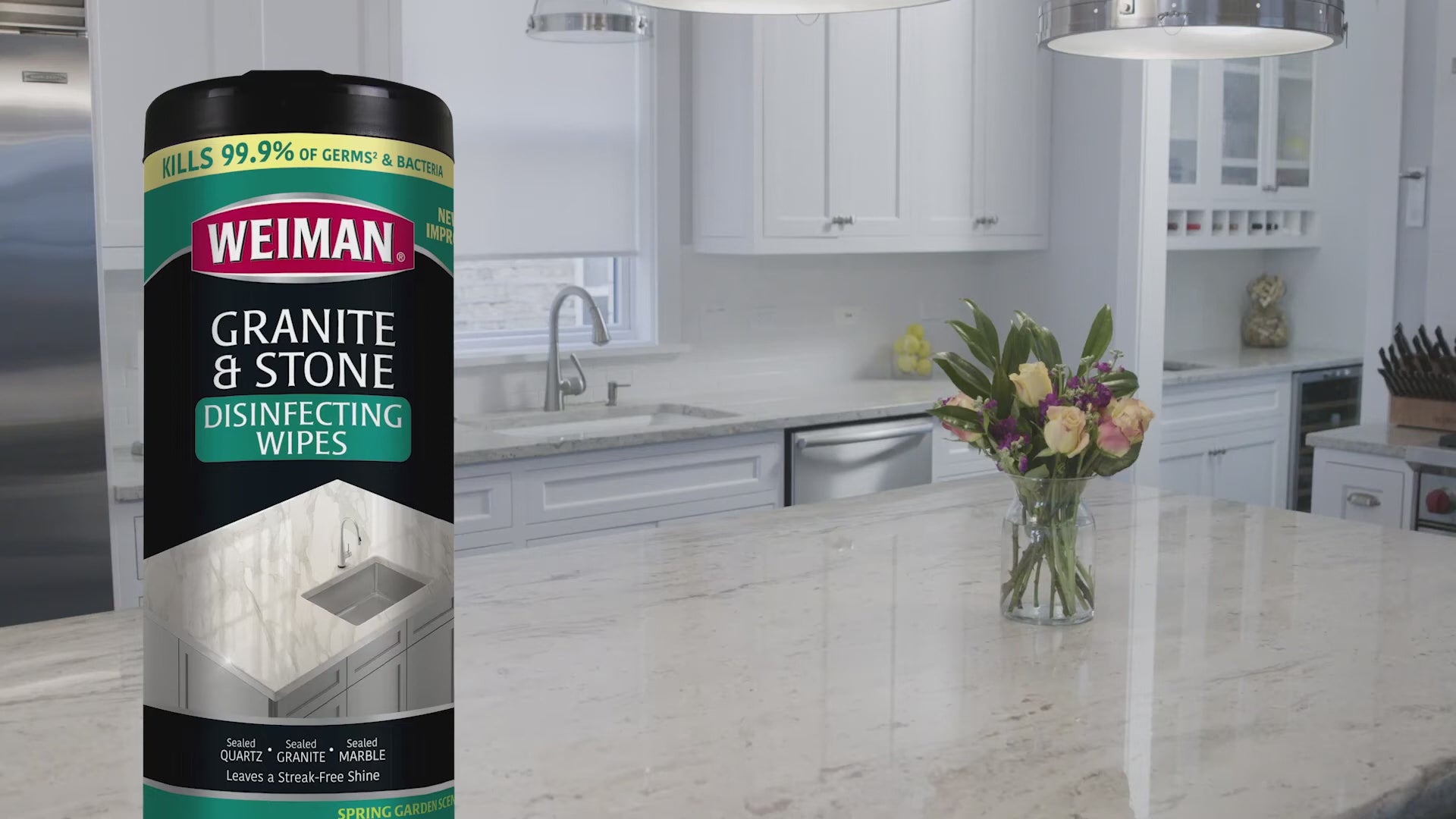 Combine stone-safe cleaning with disinfecting power. These wipes are formulated to clean, shine and kill germs on sealed stone and other hard, non-porous surfaces without leaving streaks.