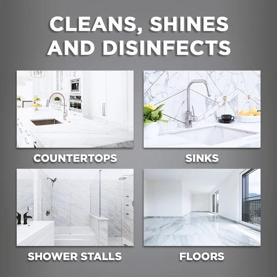 - Multi-use for countertops, sinks, showers and high-touch areas