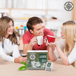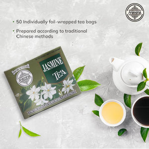 - 50 foil-wrapped tea bags flavored with natural jasmine extracts