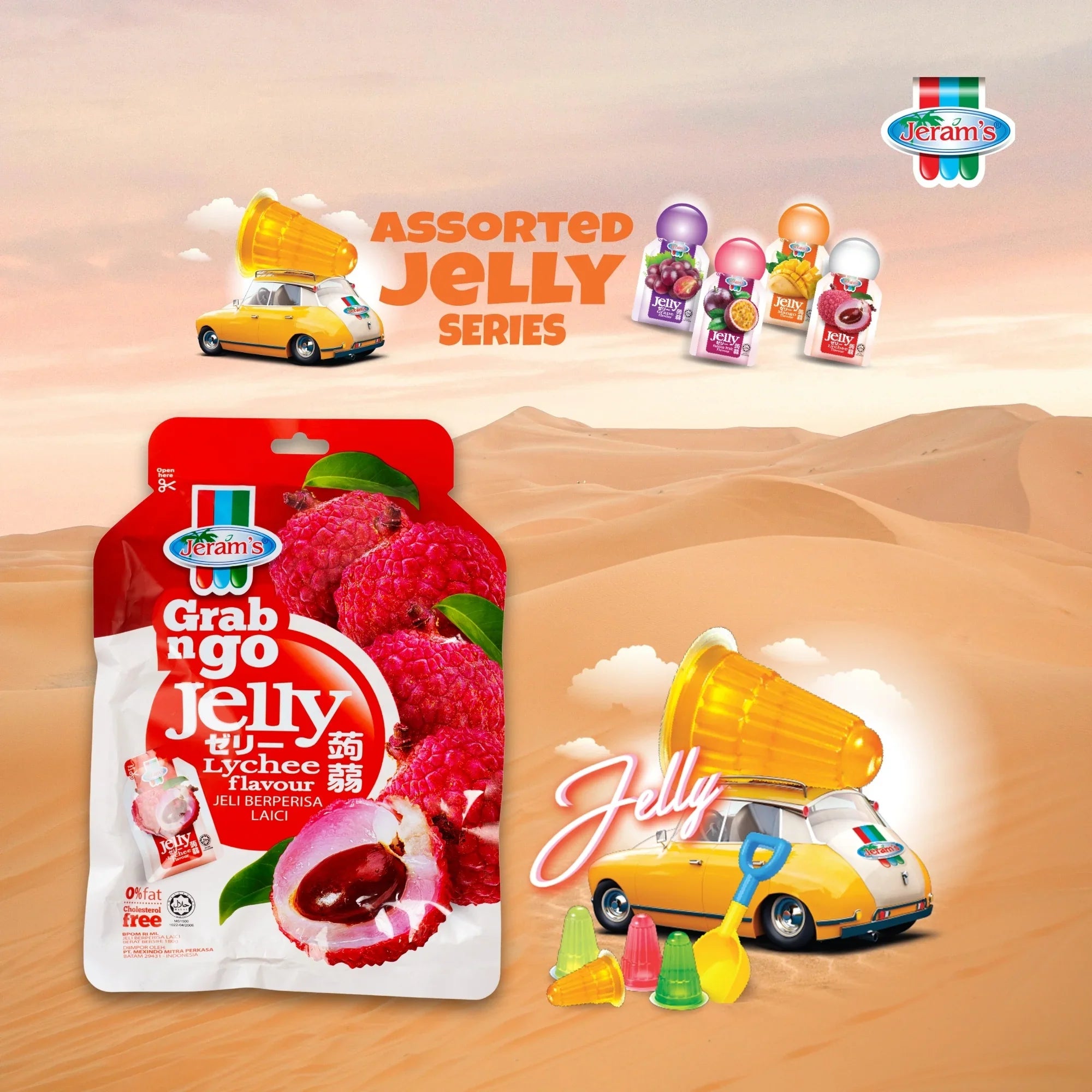 Tags: lychee jelly • grab n go • 0% fat • Jeram's
