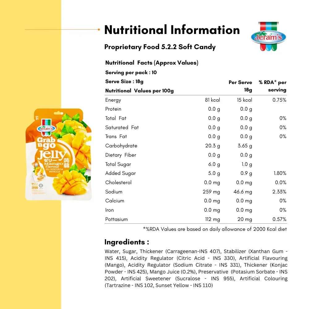Tags: mango jelly • grab n go • 0% fat • Jeram's