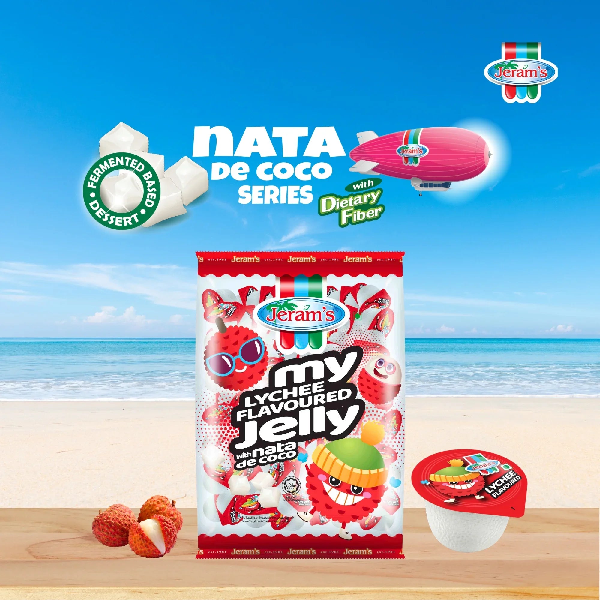 Tags: lychee mini cups • nata de coco • kids snack • Jeram's
