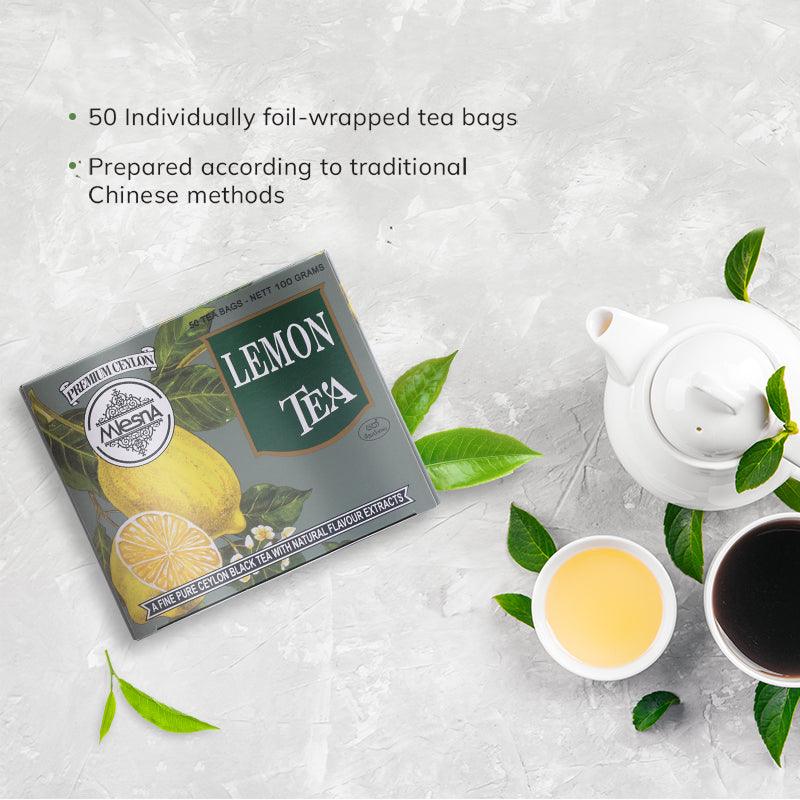 - 50 foil-sealed tea bags bursting with natural lemon flavor