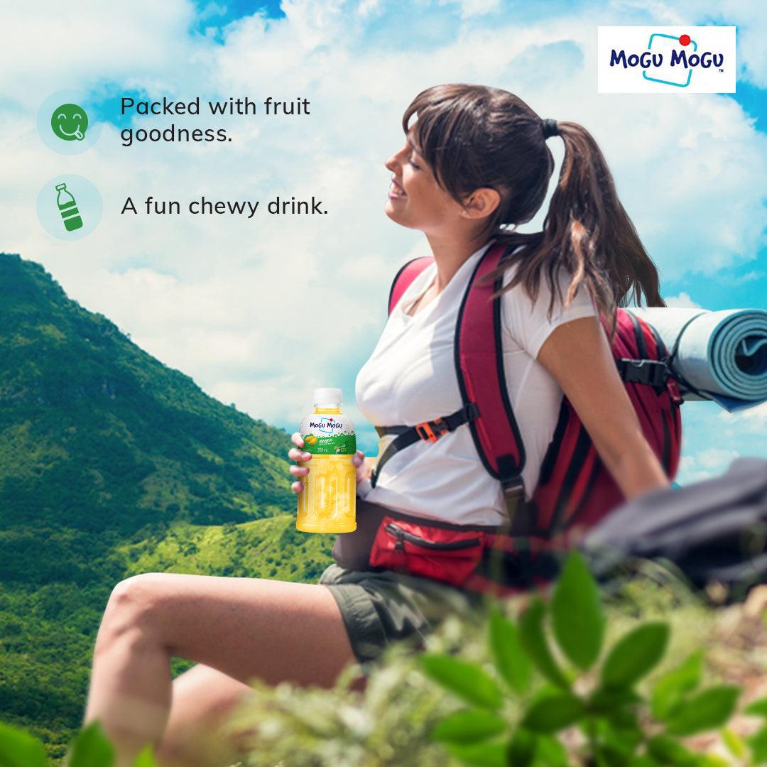 Refreshing Fruit Drink with Nata de coco in various flavours Recharge yourself with fruit and fruit fibres packed in a bottle of Mogu Mogu A Fun Drink with actual chewy pieces Imported in India from Thailand, the tropical land of fruits Avaliable in more than 60 countries in the world