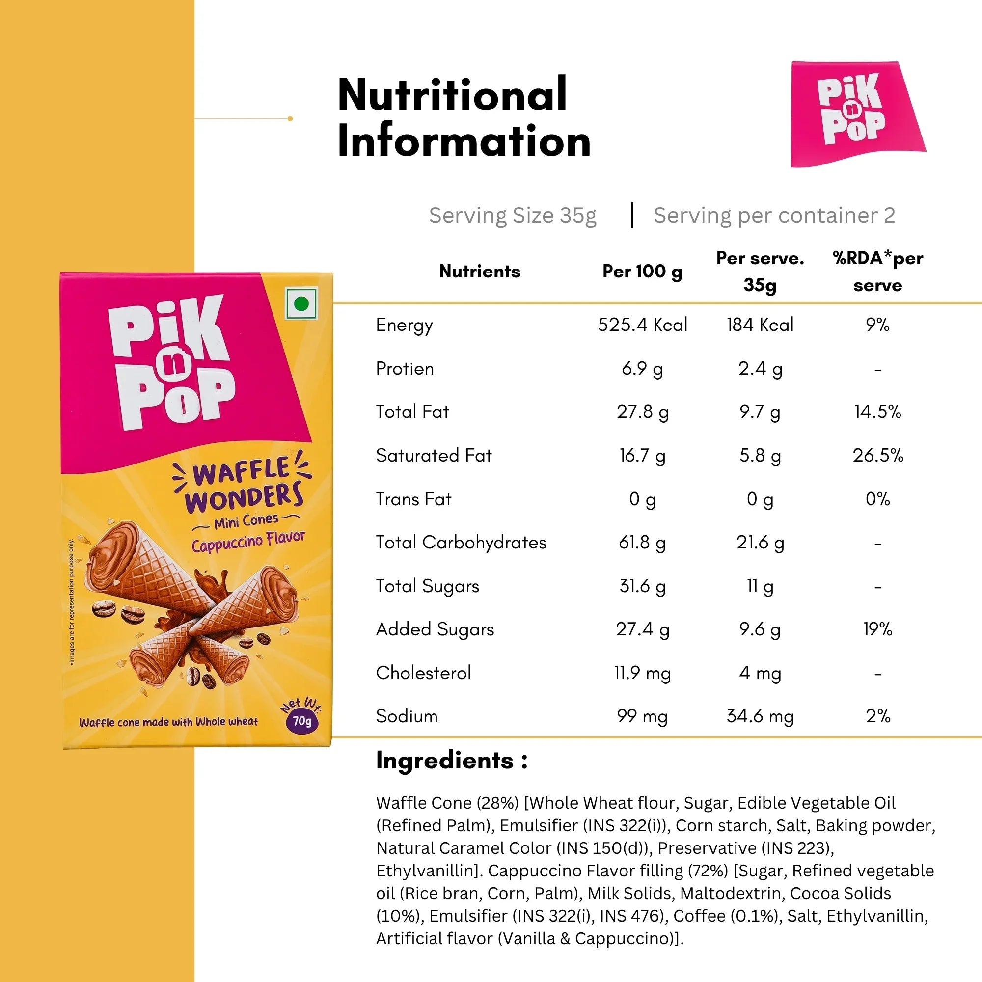 Made with no trans fats and an eggless recipe, these treats are baked fresh and are non-meltable, so you can enjoy them anytime, anywhere. With Pik n Pop, variety has never tasted so good!
