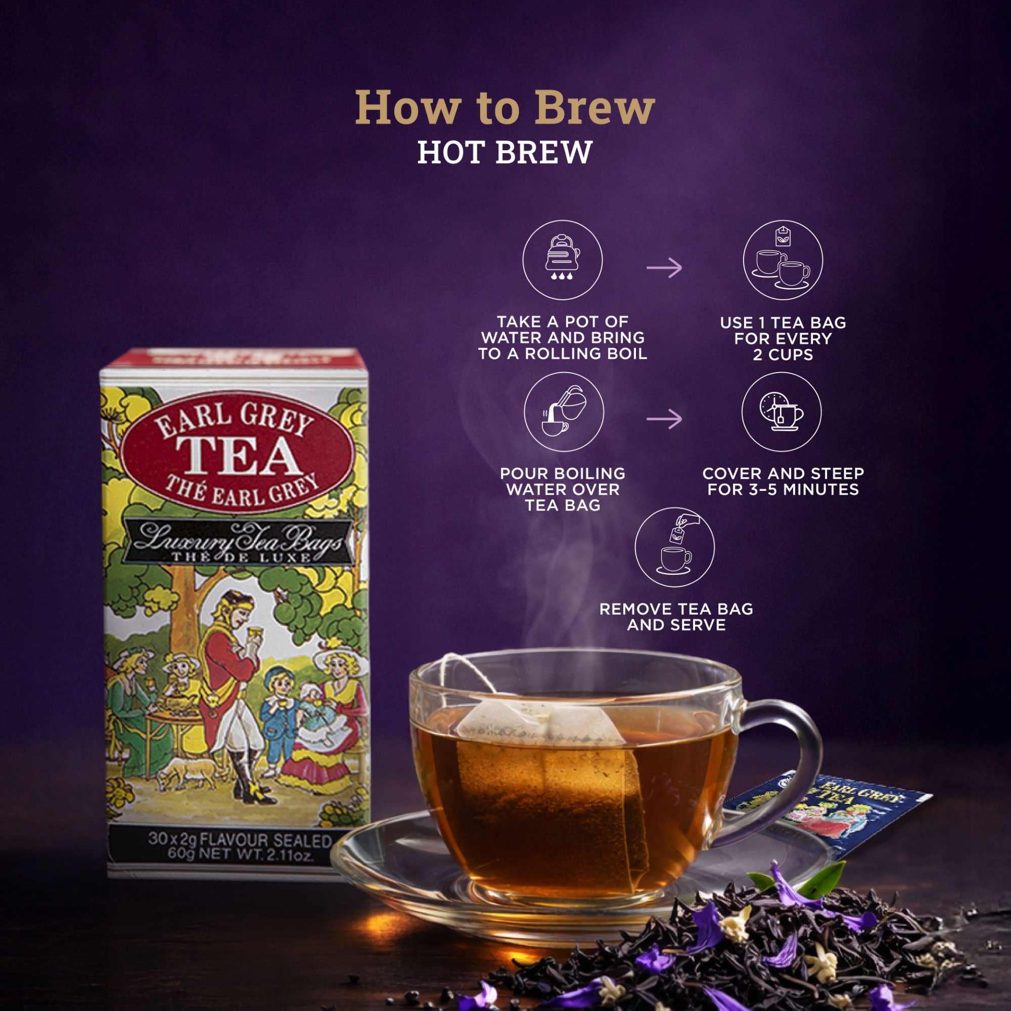 Each pack contains 30 luxury tea bags, individually sealed in ozone-friendly foil envelopes to lock in freshness, aroma, and flavour until brewing.