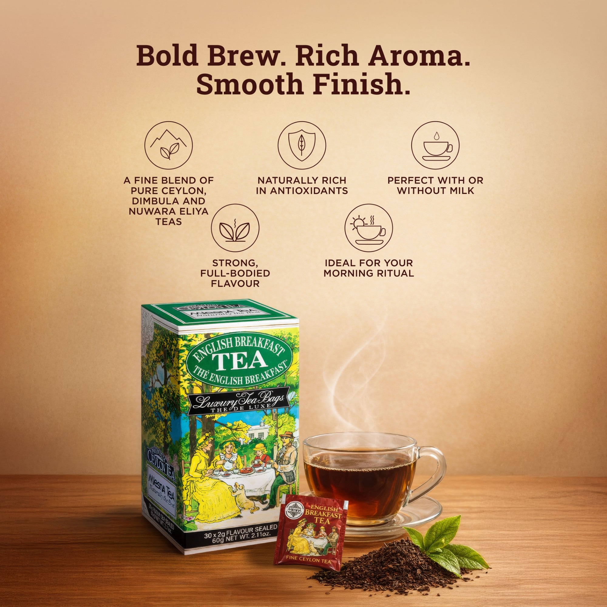 Mlesna English Breakfast Ceylon Tea 60g | Premium Luxury Tea Bags | 30 Foil-Sealed Tea Bags | Strong & Rich Black Tea | Imported from Sri Lanka