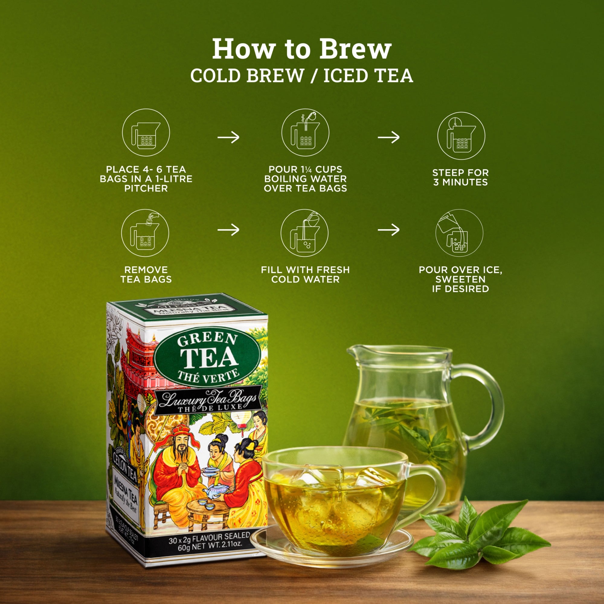 Enjoy this premium Sri Lankan green tea hot for a calming break or chilled as a refreshing iced tea.