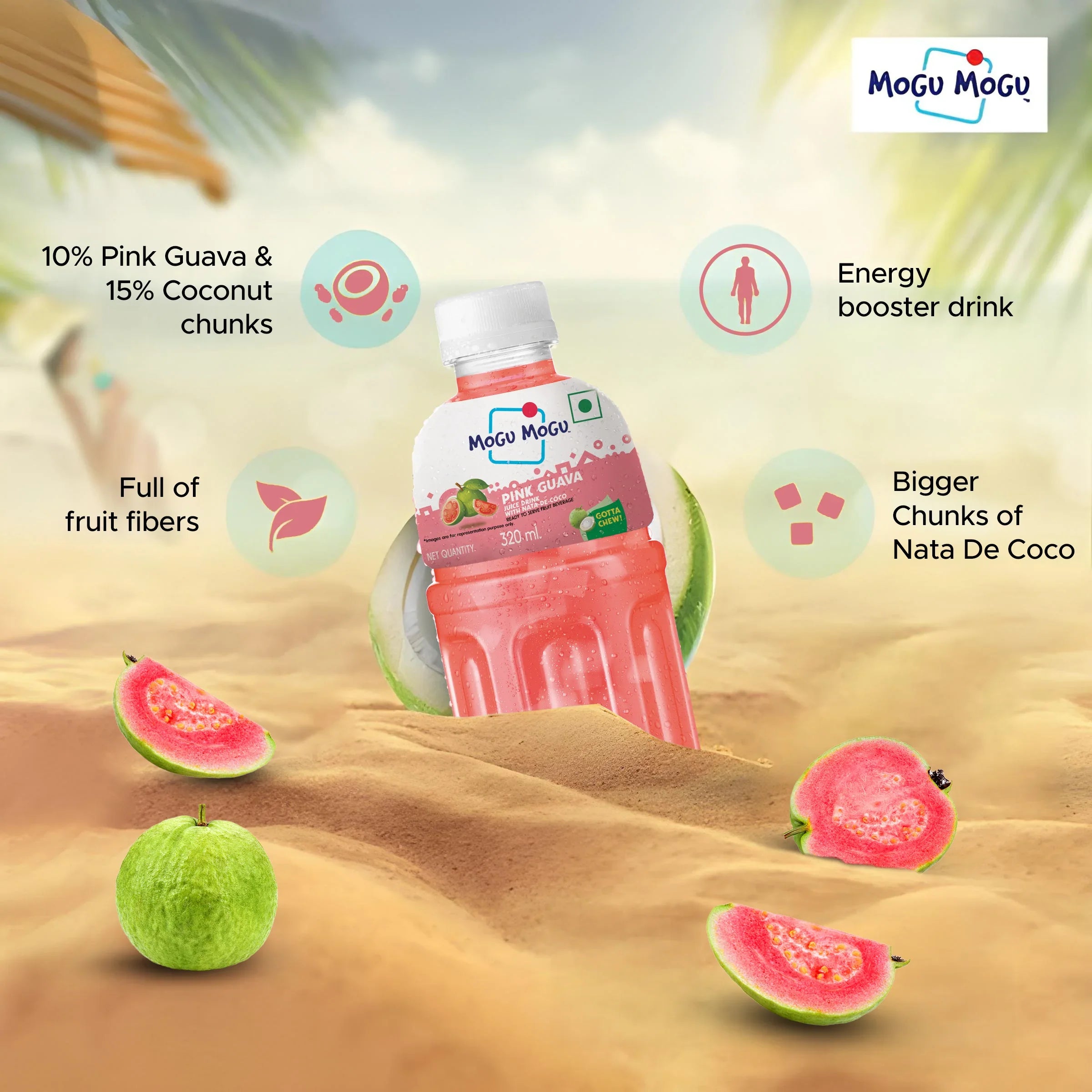 Whether you’re enjoying it at home, at work, or on-the-go, Mogu Mogu Guava combines taste, nutrition, and fun in one bottle. Experience the fruity freshness and chewy delight today – your tropical escape in every sip! 🍹