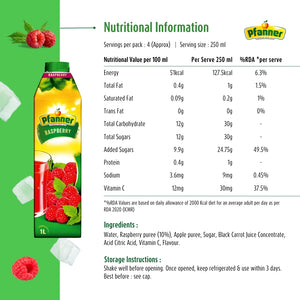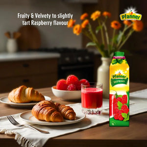 Experience the "Queen of the Berries" in a bottle with Pfanner Raspberry Juice. Crafted with 20% fruit content and 9% real raspberry pulp, this premium juice offers an authentic, rich taste. Its velvety texture and signature sweet-tart flavor make for a truly royal treat. Perfect for sophisticated palates and those who crave pure berry goodness.