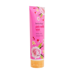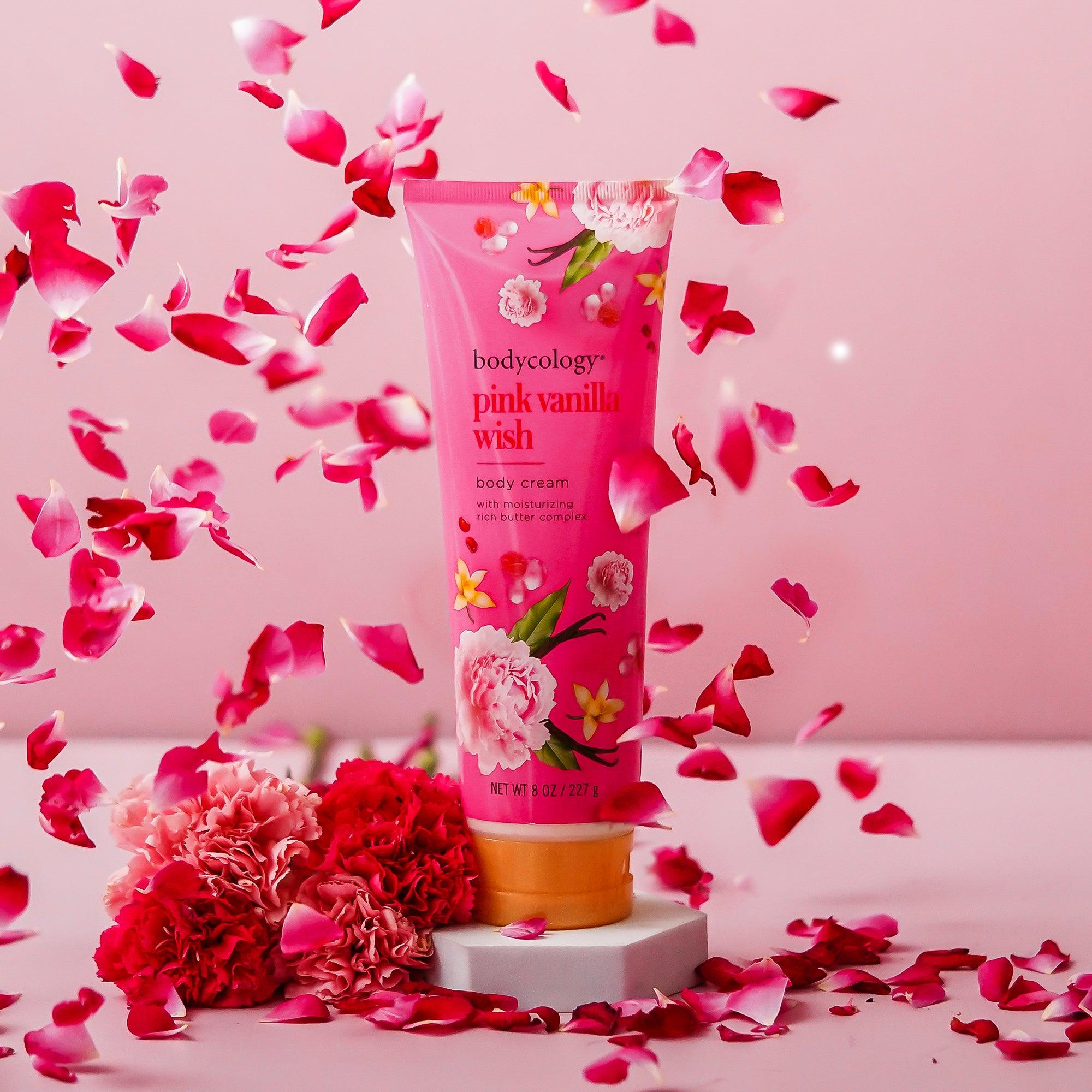 Pink Vanilla Wish Body Cream is a body cream that delivers a scent: indulge in the captivating aroma of pink vanilla wish, a delightful fusion of vanilla, pink peony, and almond, creating a warm and sophisticated fragrance experience. It's imported from the USA, cruelty-free, paraben-free, phthalate information included, moisturizing butter complex with Shea butter, Cocoa butter, Jojoba oil. Use as needed for a boost of fragrance and freshness.