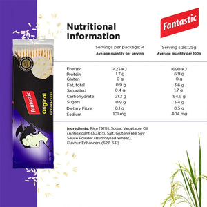 Classic, crispy, and always dependable – Fantastic Original Rice Crackers are the ultimate guilt-free snack. With their light crunch and subtle taste, they’re perfect with dips like baba ghanoush, guacamole, or creamy cheese spreads. Baked, gluten-free, and 99% fat free, they’re a pantry must-have!