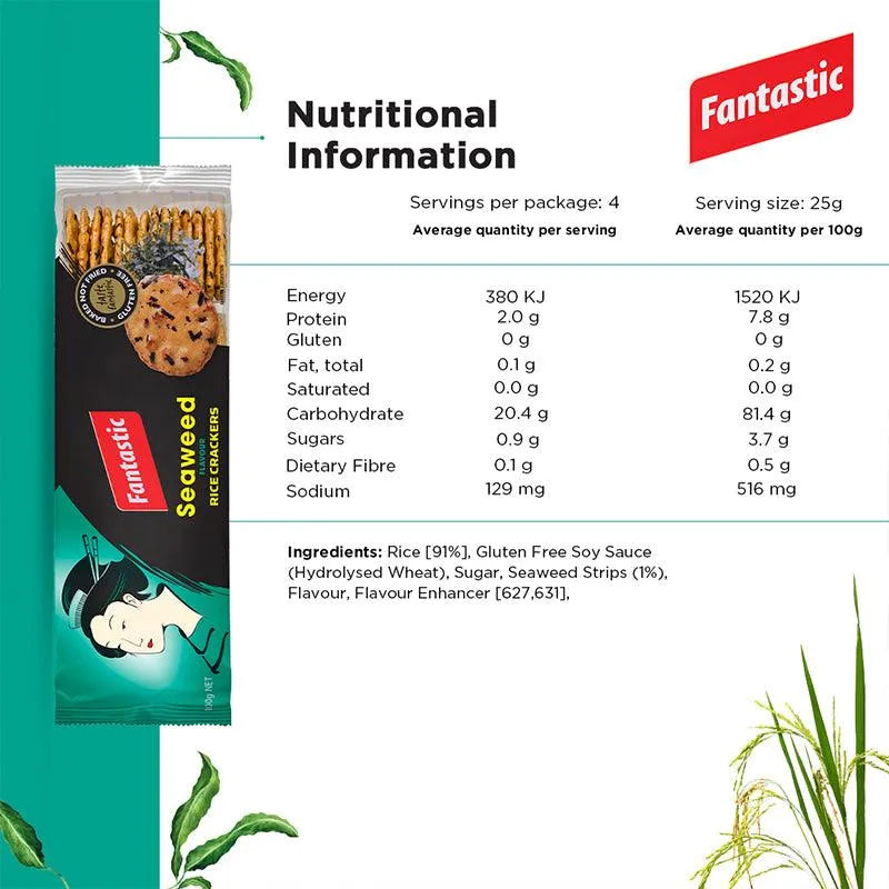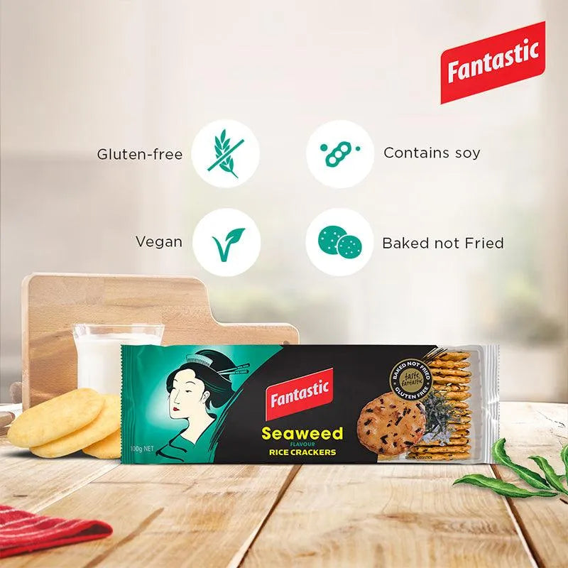 Bring a taste of the ocean to your snack time with Fantastic Seaweed Rice Crackers. Infused with natural seaweed flavour, these baked and gluten-free crackers are salty, refreshing, and satisfyingly crunchy. Perfect to enjoy on their own or as a light side with miso soup or green tea.