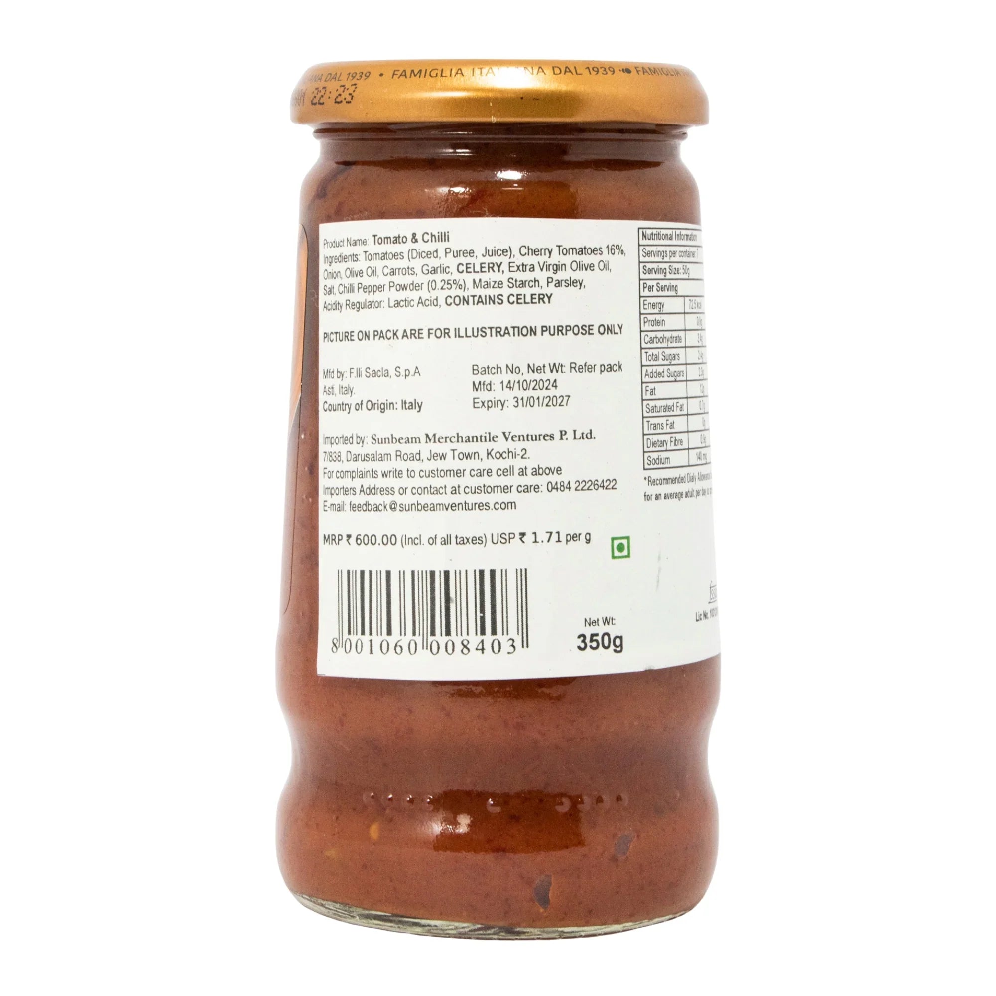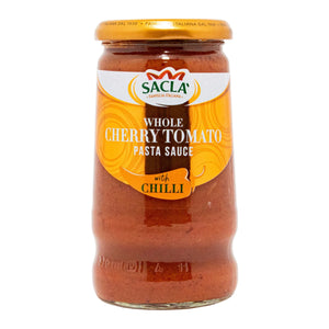 Add some heat to your plate with Sacla Whole Cherry Tomato & Chili Sauce. This sauce expertly balances the natural sweetness of whole cherry tomatoes with a spicy chili kick, creating a vibrant and flavorful sauce. The heat is present but not overwhelming, making it a perfect choice for those who enjoy a lively and bold flavor without sacrificing the taste of the fresh ingredients.