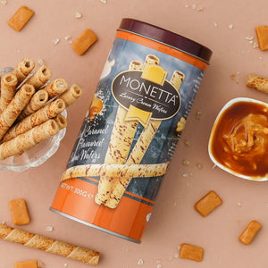 These wafer sticks are an excellent partner for your coffee or tea, a cold glass of milk, or as a unique topping for desserts. Made with high-quality ingredients, Monetta Salted Caramel Wafer Sticks are a luxurious treat. They're a thoughtful and delicious gift for anyone who appreciates a touch of gourmet flavor.