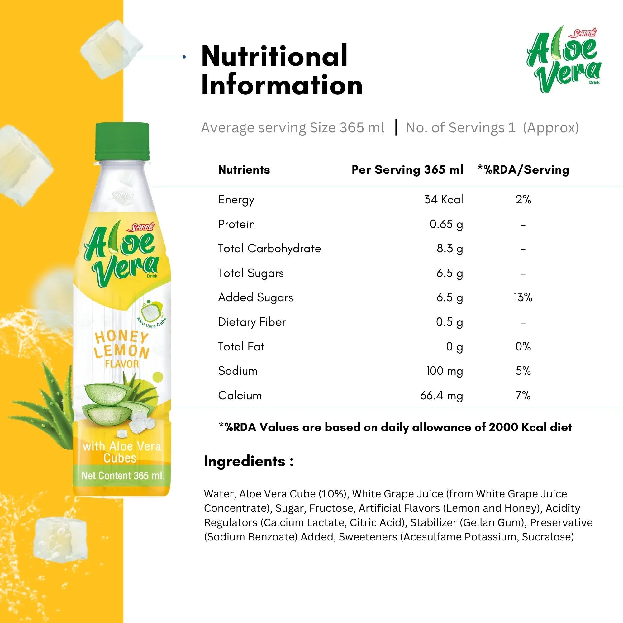 Aloe Vera Drink 365ml | Honey Lemon Flavour with 10% Aloe Vera Cubes | Ready to Drink