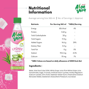 Aloe Vera Drink 365ml | Lychee Flavour with 10% Aloe Vera Cubes | Ready to Drink