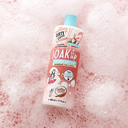 DIRTY WORKS BATH SOAK: Tropic like it’s hot with the Dirty Works Soak It Up, Coconut Bath Soak. Rejuvenate your soul with a top-notch extra bubbly bath soak, carefully formulated for a gentle cleanse and infused with creamy coconut. Available in a 500ml squeezy bottle.