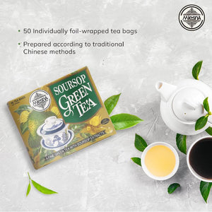 - 50 foil-wrapped tea bags with authentic soursop extract