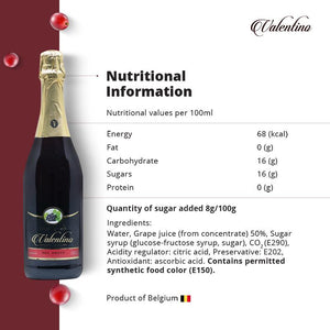 Celebrate in style with Valentino Sparkling Red Grape Juice, a rich and fruity alternative to champagne. Crafted in Belgium, this non-alcoholic drink captures the bold flavor of ripe red grapes, balanced perfectly with a lively fizz. Ideal for family gatherings, festive toasts, or a thoughtful gift, it turns every moment into a celebration without alcohol.