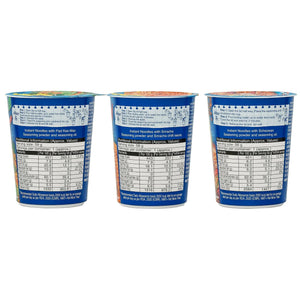 Blue Dragon Spicy Schezwan Instant Cup Vegetarian Noodles deliver a bold kick of heat and a rich, savoury flavour, enhanced by the aromatic Schezwan seasoning powder that brings a delightful fusion of spices to every bite + Spicy Holy Basil Instant Cup Vegetarian Noodles offers a vibrant medley of flavours, combining fragrant holy basil and a spicy kick from the Pad Kee Mao seasoning powder for a real taste of Asian cuisine + Sriracha Chilli Instant Cup Vegetarian Noodles deliver a fiery flavour burst with a perfect blend of Sriracha seasoning powder and Sriracha chilli sauce for an irresistible, spicy taste of authentic Thai food. Available in a affordable combo pack of 6, which has dual packs of all the three different flavours. Having it in bulk combo pack of 6 with 3 different flavours provides you with convenient meal options and a variety of tastes to satisfy different cravings. This combo pack is a convenient and versatile meal / food / snacking option, perfect for catering to guests at get-togethers, festive family gatherings, or office parties or simply to stock up the supplies of food, for your busy days.