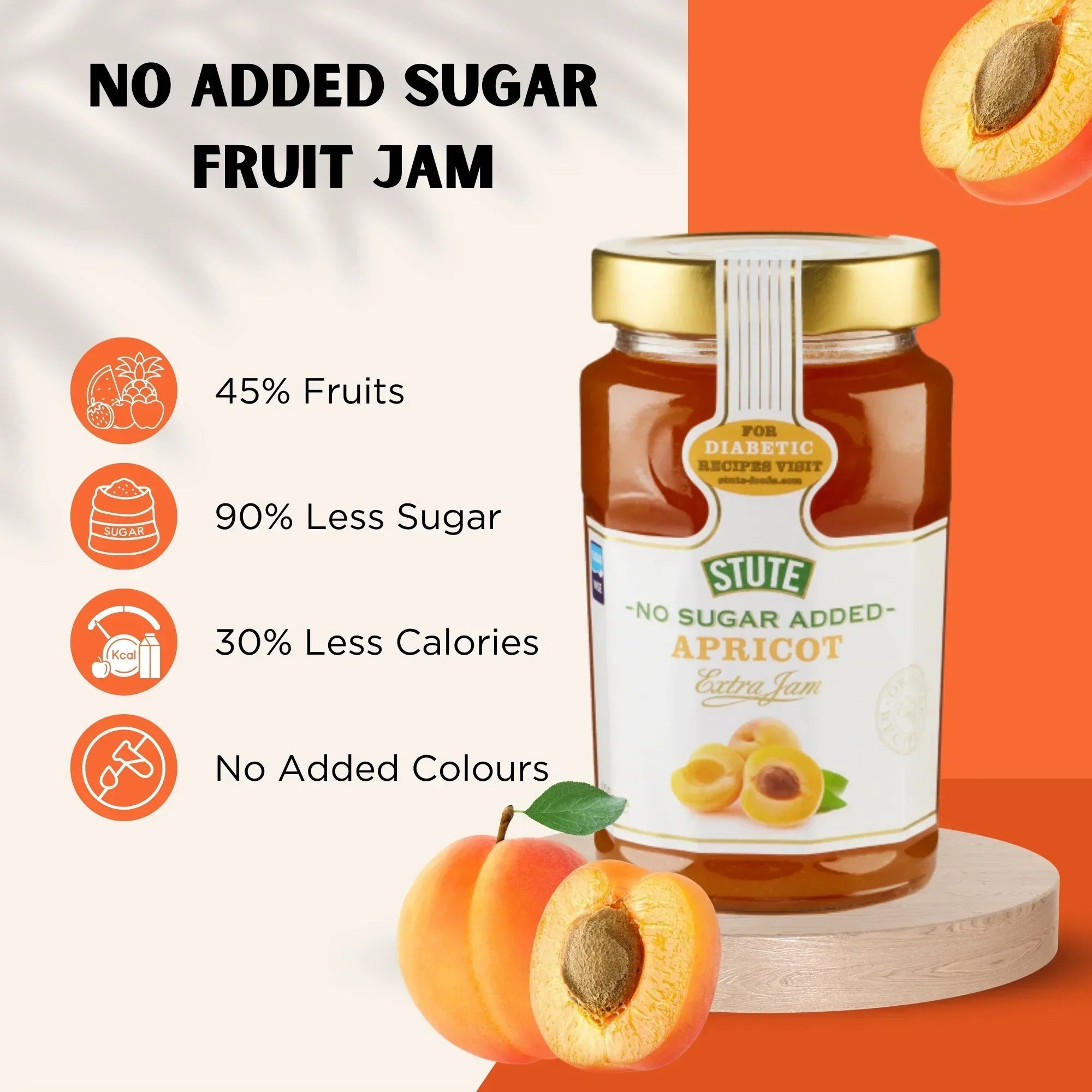 Sun-Ripened Apricot Jam, Zero Sugar Added. Stute's Sugar-Free Apricot Jam delivers the pure, sun-drenched sweetness of real apricots. With a balance of bright, mildly tart, and naturally sweet notes, this jam is a favorite for those who want authentic fruit flavor without compromise. The smooth texture with delicate fruit pieces makes it feel just like a classic jam.