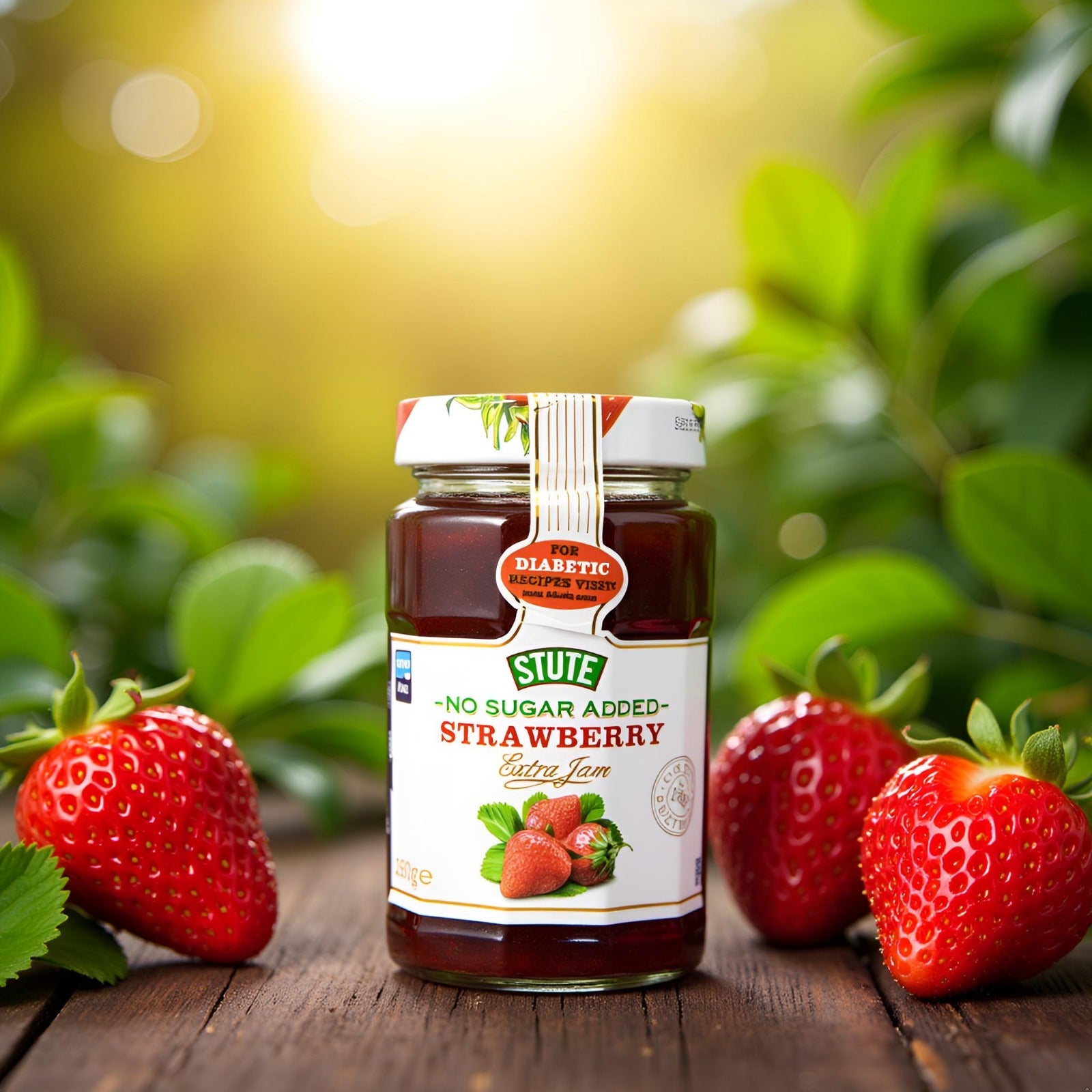 A Guilt-Free Classic: Strawberry Jam. We’ve captured the fragrant, juicy sweetness of ripe summer strawberries in this classic jam. Stute's Sugar-Free Strawberry Jam is a bright, vibrant, and naturally fruity spread that fits perfectly into a balanced eating plan. It’s a guilt-free way to enjoy a timeless favorite.