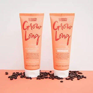 The Umberto Giannini Grow Long Shampoo & Grow Scalp Scrub Energizing Duo is your go-to solution for promoting healthy hair growth. This combo features the **Grow Long Shampoo**, which gently cleanses while nourishing your hair for longer, stronger strands, and the **Grow Scalp Scrub**, which exfoliates and detoxifies the scalp, removing buildup and dead skin cells. Formulated with caffeine and black coffee seed extract, this duo stimulates the scalp and boosts blood circulation, creating an ideal environment for growth. Vegan, cruelty-free, and free from sulfates and parabens, it's suitable for all hair types, including color-treated hair.