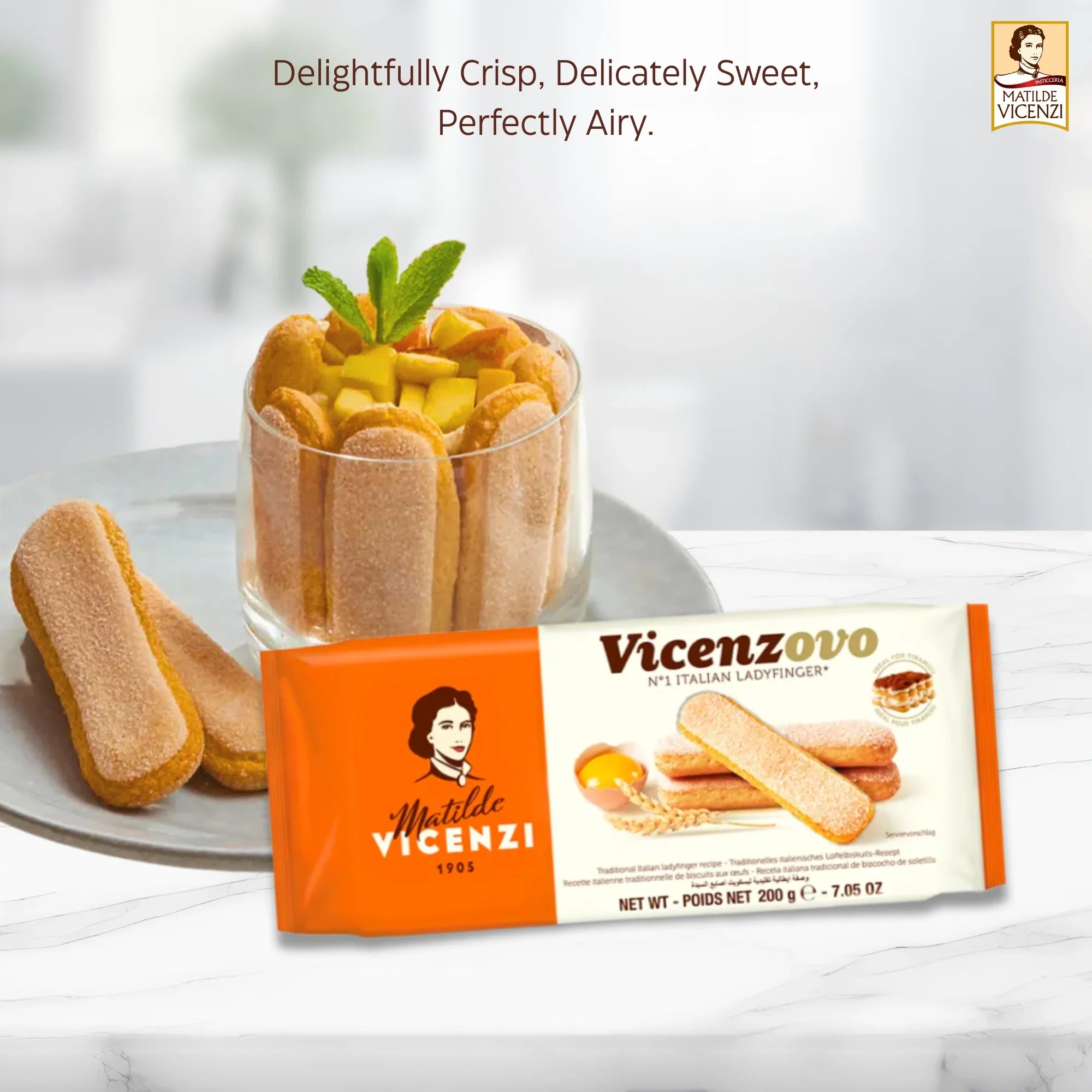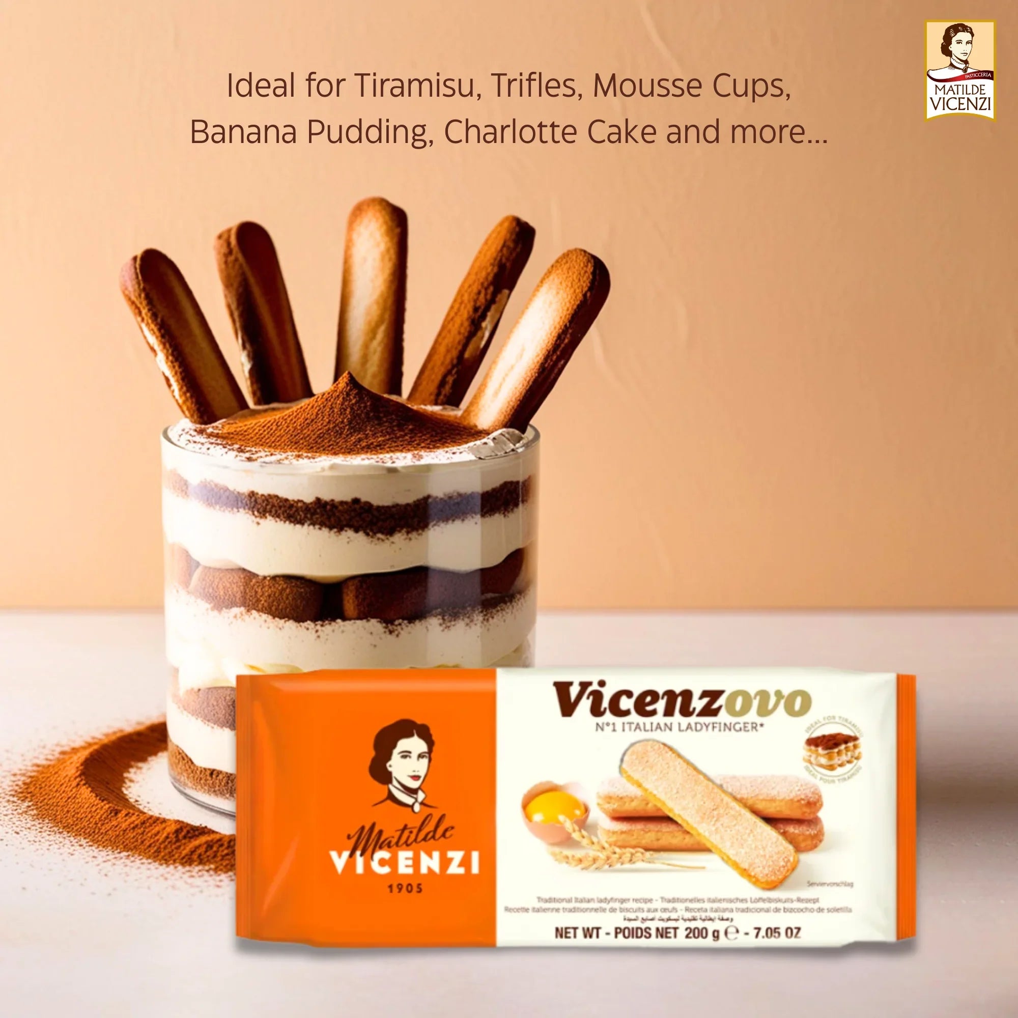 Experience the timeless taste of Italy with Matilde Vicenzi’s Vicenzovo Ladyfinger Biscuits — the No.1 Italian choice for tiramisù, charlotte cakes, and classic dessert creations. Since 1905, the Vicenzi family bakery has been a symbol of Italian excellence, renowned for its commitment to crafting premium pastries, ladyfingers, and cake bases using only the finest ingredients and traditional baking techniques.