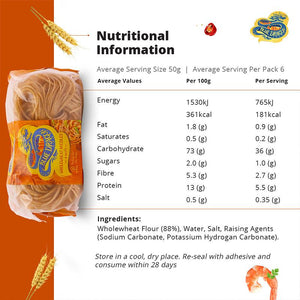 • 6 nests of whole wheat noodles – ideal for stir-fries, noodle soups, and more