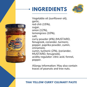 Enjoy the warm, comforting flavours of Thailand with Blue Dragon Thai Yellow Curry Paste. Made from traditional Thai ingredients like lemongrass, garlic, shallots, and fragrant spices, this paste creates a rich, mild curry that's perfect for all palates. Ideal for curries with meat, seafood, tofu, or vegetables.