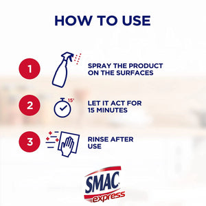 Clean and sanitize in one go with SMAC Express Degreaser Disinfectant. This dual-action formula provides heavy-duty degreasing combined with powerful sanitizing, leaving kitchen and hard surfaces both spotless and hygienic. Its zero-residue formula degreases and deodorizes, rinsing away quickly for an efficient, streak-free clean that you can trust.