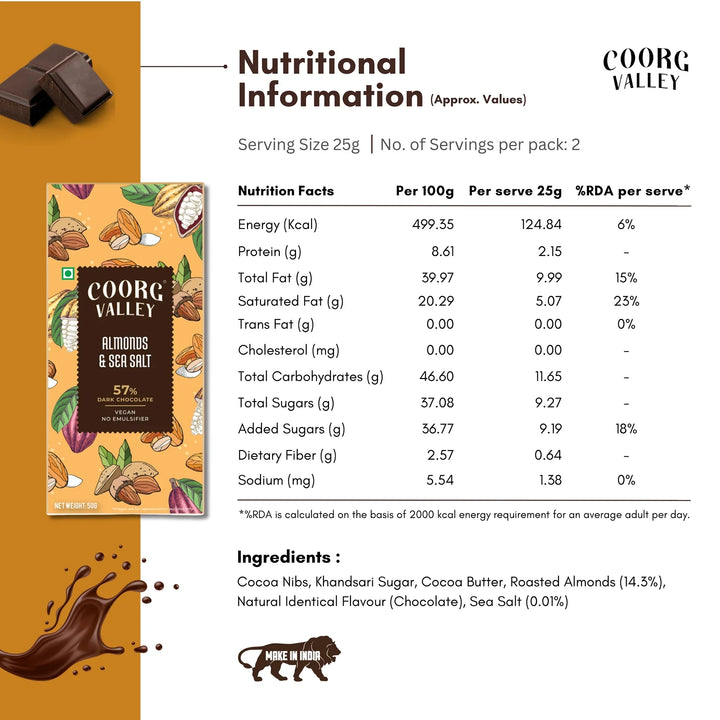 Almonds & Sea Salt Dark Chocolate 50g