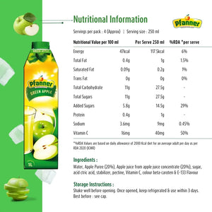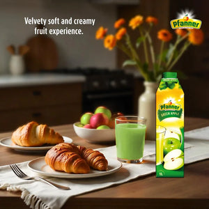 Awaken your senses with the crisp, zesty flavor of Pfanner Green Apple Juice. Made with at least 40% fruit content, this juice delivers the refreshing zing of green apples with a surprisingly smooth, velvety texture. It perfectly balances a naturally rich taste with a clean, tart finish. A vibrant and invigorating choice for any time of day.